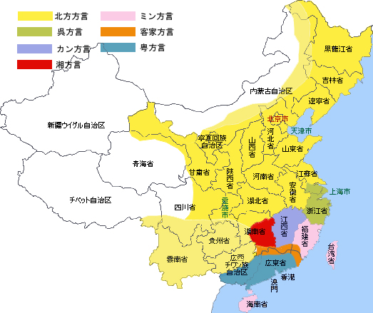 しかし、一口に中国語と言っても、広大な中国にはさまざまな方言があって、何と外国語並みにたがいに話が通じないという。方言というより別の言語といってもよいと言われている。大別して北方語と南方語に分けられるがそれぞれにさらに細かな方言があり、文法まで異なるらしい。さらに、中国語の「声調」といえば四声とばかり思っていたら、何と、北京語は四声でいいのだが、広東語は九声、福建語は八声もあるといい、上海語及び客家(ハッカ)語は六から七声である。北京語には濁音がないのに南方の諸方言には存在するのだそうである。これで本当に同一言語と言えるのであろうか。さらに「民族」という概念のいい加減さをはっきりと見る気がする。