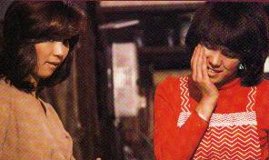 | ここは東京の下町。その片隅のアパートに、2人きりで暮らすケイとミーは、貧しいけれど、明るくけなげに生きている姉妹だった。患者さんのあいだではすごい人気だ。今日も、交通事故で入院している田中夫人から 「息子の嫁になって」 と申し込まれた。 そこへ入って来たのが、その息子の高之。貿易会社のサラリーマンである彼は、男らしくて、とってもハンサム。ひと目見ただけで ケイはポーッとなってしまい、胸の鼓動がどきどき、目先はくらくら。 その晩、アパートに帰ったケイは、信用金庫に勤める妹のミー に、高之のことを打ち明けた。 「彼からプロポーズされたら、喜んで受けるつもりよ」 「よかったわね、お姉ちゃん!」 ミーは、心から喜んでくれた。そして、そのミーも、実は結婚したいと思っている人がいることを告白した。しかし、服部というその相手がスナックのバーテンダーだと聞いて、ケイは猛反対。 「悪いことは言わないから、今のうちに別れなさい。スナックに勤めている男な んて、きっと狼なんだから」 ♪男は狼なのよ 気をつけなさい 年頃になったなら つつしみなさい 羊の顔していても 心の中は 狼が牙をむく そういうものよ・・・・・ でも、ミーはあきらめてなかった。そのことで、仲のいい姉妹の間には溝ができ、ミーは家を出て、彼と暮らすとまで言い出した。 心配したケイは、服部の勤めるスナック“シンドバッド”へ、様子を見にやってきた。そこで服部の顔を見て、ケイは、ビックリ仰天。なんとそれは、あの田中高之だったのだ。 高之は、円高で会社が倒産したために、服部と名乗って、ここでバーテンダーをしているのだという。 「妹のことを、どう思っていらっしゃるの?」 「・・・・・愛しています。」 ケイの胸で、初恋がパチンと割れた。涙を隠して、高之をミーに譲ろうと決心するケイ。でも、妹の愛する相手が、同じ高之だったと知って、ミーは大ショック。 ♪ここかと思えば またまたあちら 浮気なひとね サーフィンボート こわきにかかえ 美女から美女へ・・・・・ ミーは、姉のために、高之をあきらめようと思った。 「あの人が本当に愛してるのは、お姉ちゃんなのよ」 「違うわ。あの人と結婚するのは、ミーちゃんよ」 「強がり言わないで。お姉ちゃんにとっては、やっと見つけた初恋の人でしょう 私なんか、ボーイフレンドは山ほどいるもの」 そう言って、笑ってみせるミーの目に、キラリと光るものがあるのを、ケイは見逃さなかった。 翌日、ミーは“シンドバッド”へ行って、高之に、姉と結婚してほしいと頼んだ。意外なその言葉に高之はがくぜん。 「僕が愛しているのは、君なんだよ」 「私は、愛していないわ。・・・・・お願い。姉にとっては、一世一代の恋よ。 その気持ちを思うと、私、せつなくて・・・・・」 そこへケイがは入ってきた。あわてて椅子の影に隠れる。それとは気がつかず、ケイは高之にこう切り出した。 「私、あなたとは結婚できません。いままで妹にも黙っていたんですが、私は前 に勤めていた診療所の検査技師と、恋仲なんです」 そして彼女は、杉本という男を呼び入れ、婚約者だと紹介した。 「私たち、春には結婚する予定です。ですから、どうぞあなたは、妹をきっと幸せにしてやってください。」 2人が出て行ったあと、ポカンとしているミーに、高之は言った。 「君はいい姉さんを持ったね。あれは君と僕を結びつけるための、ヘタな芝居な んだよ」 「じゃ、あの男のひとは?」 「母と同じ病院に、ケガで入院していた労務者だよ」 「お姉ちゃんったら・・・・・バカみたい」 そう言いながらも、ミーは胸に熱いものがこみあげ、高之にすがって、激しく泣きじゃくった。 その頃、病院の外ではケイが、臨時婚約者の杉本に激励され、すべて吹っ切って、静かに立ち去ろうとしていた。でも、その表情には、やはりまだちょっぴり哀しみが・・・・・。ケイ、かわいそう |  |