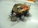 | キングファラオIII世 | ファラオチョップ | クラッシュギアTのDVDに入ってた資料に載ってた ピラミッドなギアを見て製作された嫌ギア。 酔拳シャーシにバンプホーンという仕様で動きすらキモイ。 呪いに注意しましょう。 熊本に持っていったときは相当ウケたらしいが・・・。 正面から 斜め下から |